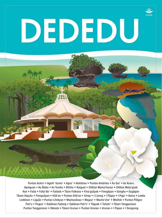 Dededo is located at the north central part of the island where most of the population on Guam presently centers. It encompasses an area of about 30 square miles of Guam’s 212 miles. The word Dededo comes from a system of measurement using the fingers in which each finger signifying an inch. So as one measures “one inch, two inches, three inches” the name Dededo was derived the measurement of two fingers indicating two inches. There is another word that could possibly give this village its name. The word “dedeggo” means a person who walks on tiptoes so as not to wake up those who are sleeping. It is not clear whether Dededo got its name because someone long ago measured the place with his/her fingers or the people habitually walked on tiptoes.